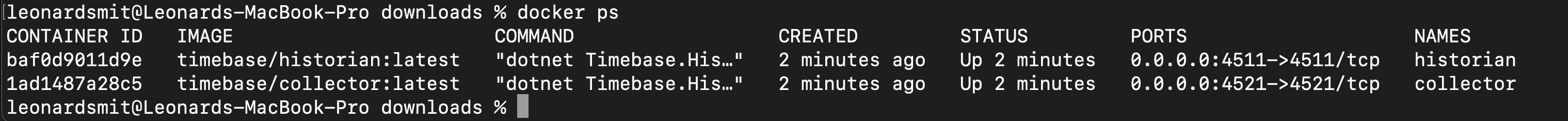 - To confirm both the Time Series Historian and Collector containers are running, execute the following command: